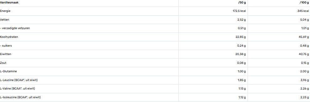 Wei-eiwit isolaat, gecombineerd met haver dat bijdraagt aan een toename van spiermassa terwijl deze ongelooflijk goed verteerbaar is. Verrijkt met L-glutamine en het bevat ook een natuurlijke bron van BCAA’s.