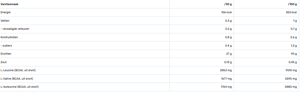 - Zuiver eiwit en zeer hoog in BCAA