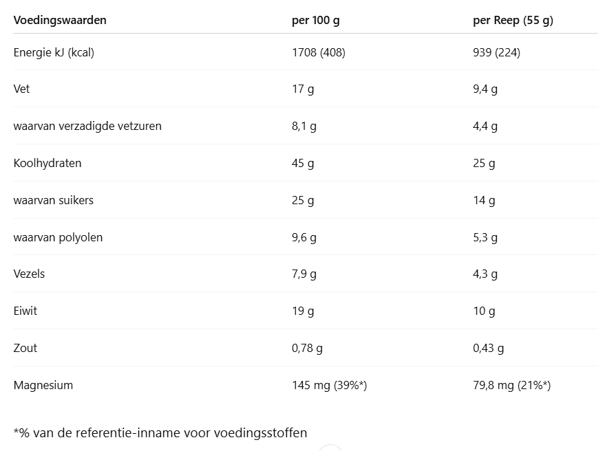 - Met koolhydraten en 10g hoogwaardig eiwit per reep