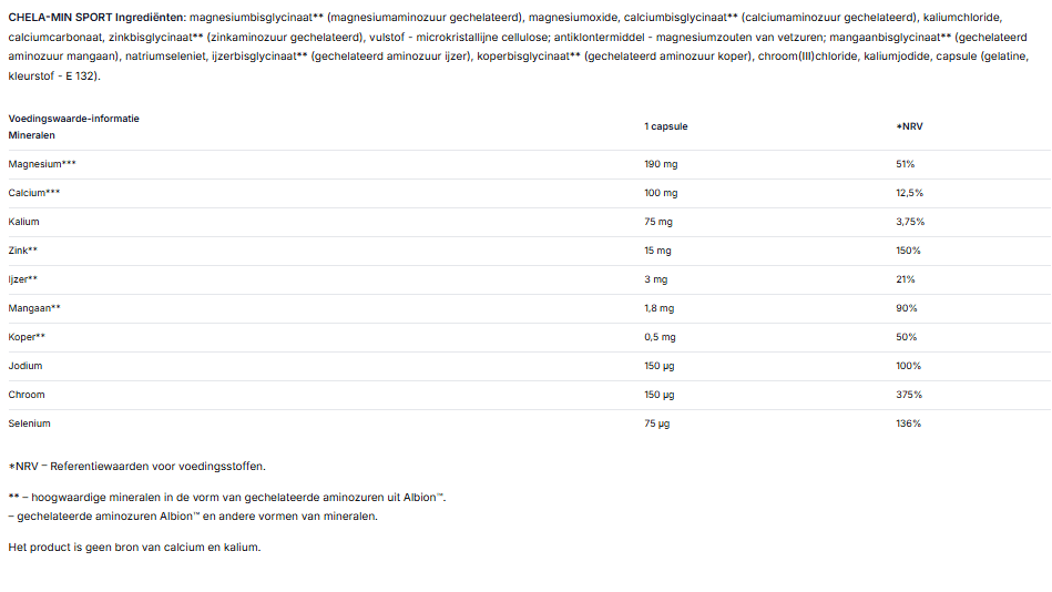De aanbevolen dagelijkse dosis niet overschrijden. Voedingssupplementen mogen niet worden gebruikt ter vervanging van een gevarieerde en evenwichtige voeding. Niet geschikt voor zwangere vrouwen.
